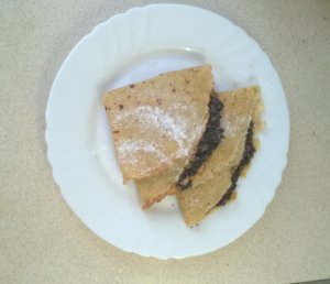 Ebben a palacsintában az a jó, hogy nincs benne fehérliszt, de nagyon finom. Ha nem mondom meg a családnak, hogy zablisztből készült, akkor észre sem veszik. Nagyon laktató, úgyhogy nem lehet belőle sokat enni. Bármivel lehet tölteni, mint a hagyományos palacsintát.
