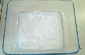 A sütőt előmelegítem kb. 180 fokra. Amíg melegszik egy közepes tepsiben, vagy hőálló tálban egy cm vastagon elterítem a sót. Nagyjából egyforma krumplikat alaposan megmosok, majd letörlöm őket. A sóágyra fektetem a burgonyákat, és betolom a sütőbe. Addig sütöm amíg egy kést simán beletudok szúrni egy krumpliba. Ez kb. 35-40 perc. Amíg sülnek a burgonyák elkészítem a marinádot.