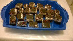 Ha elkészült a süti hűtőben kell tárolni. (Nem fogja sokáig foglalni a helyet, hamar elfogy.)