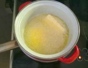 Közben egy fazékban vizet forralok, és a tetejére teszem az edényt amiben a tojásfehérjéket felverem a „cukorral”. Ha már olyan kemény a hab, hogy nem esik ki a felfordított edényből kész van.