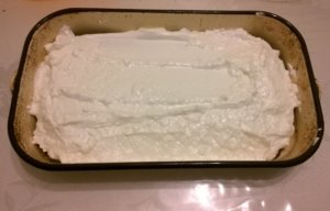 Belesimítom a tepsibe, és berakom a sütőbe. Kb. 20 percig sütöm. (Tű próbával ellenőrzöm.)