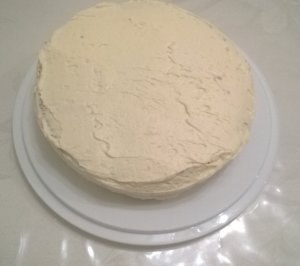 Ha a piskóta teteje kicsit felpúposodik, akkor levágom a “púpot” és megfordítom a tortát, hogy az alja kerüljön felülre, így szép sima lesz a teteje.